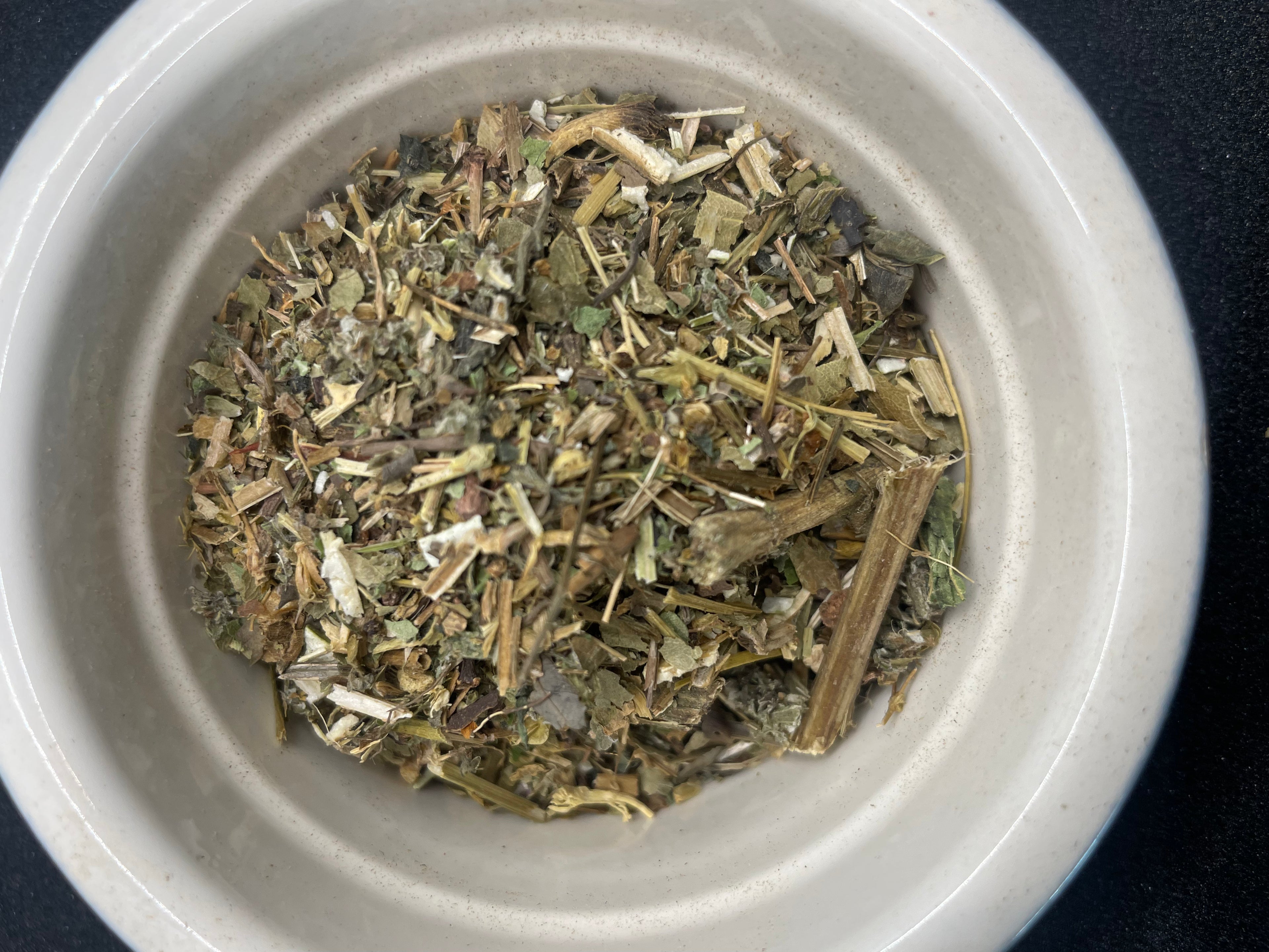 Put 3 tablespoons in a mug and pour 16oz of boiling hot water over the herbs. Let it steep for 30 mins and strain. Drink 1/2 cup 3x a day for 12 weeks and then reassess.